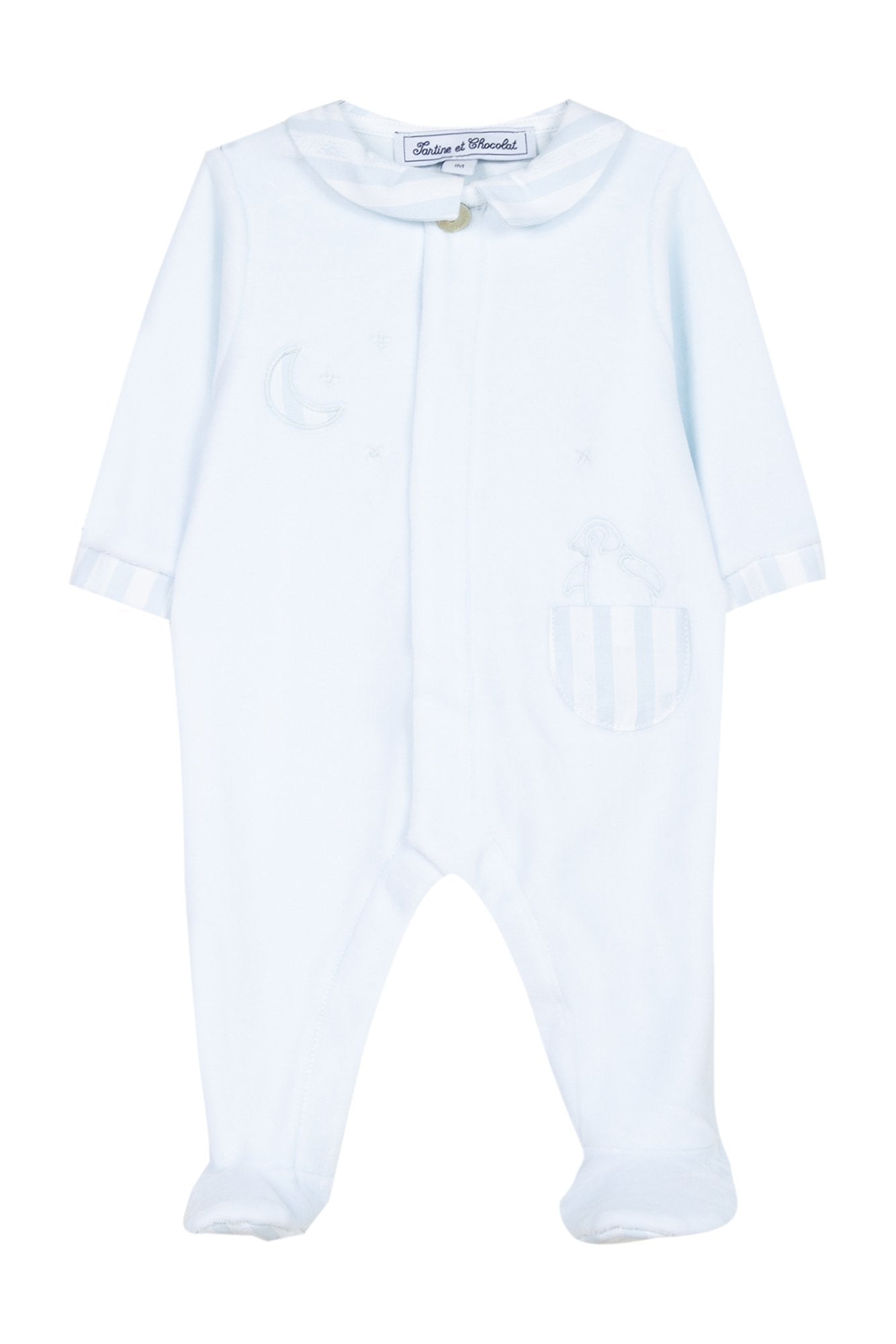 This sky blue pyjamas is gorgeous. It's ideal for a good night’s sleep or taking your baby out and about. We love the super-soft velour knit, stylish Garda details and penguin and star embroidery.