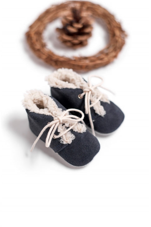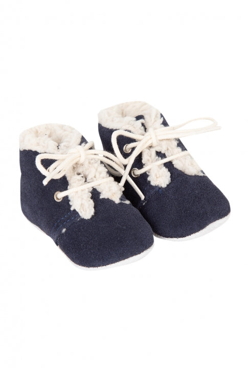 These navy fur shoes will keep your little boy’s feet warm this winter. We love the super-soft faux fur.
