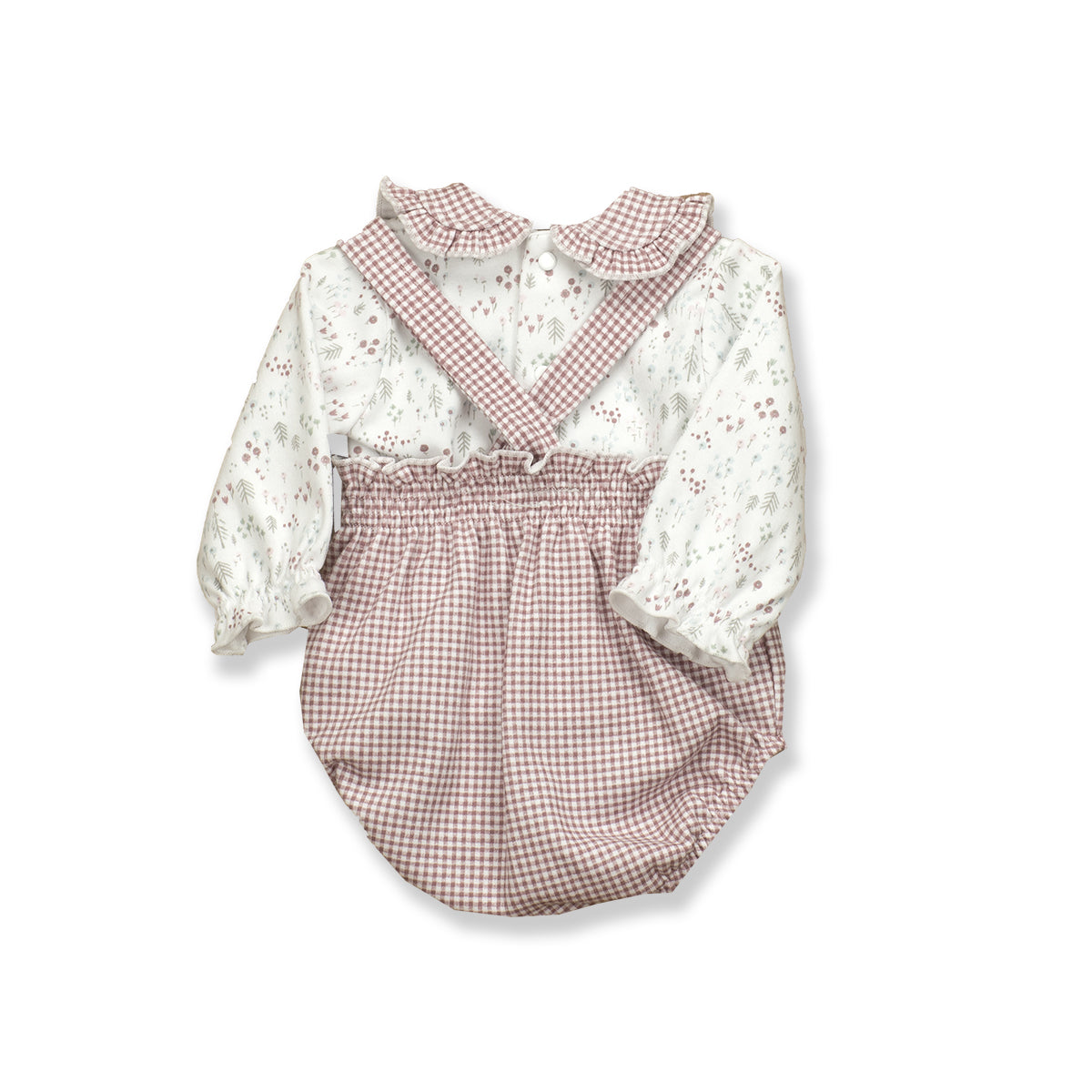 Pretty set with bloomer and detailed blouse underneath in a soft cotton. This is perfect paired with some tights for the colder months.