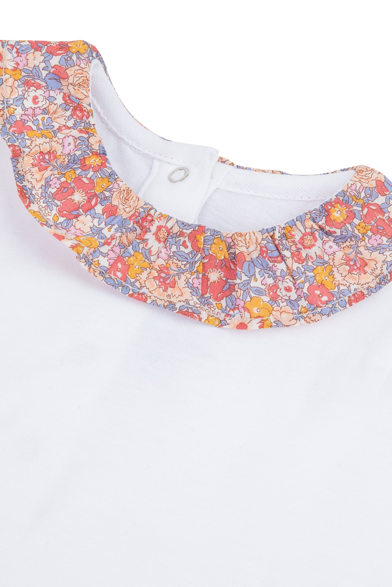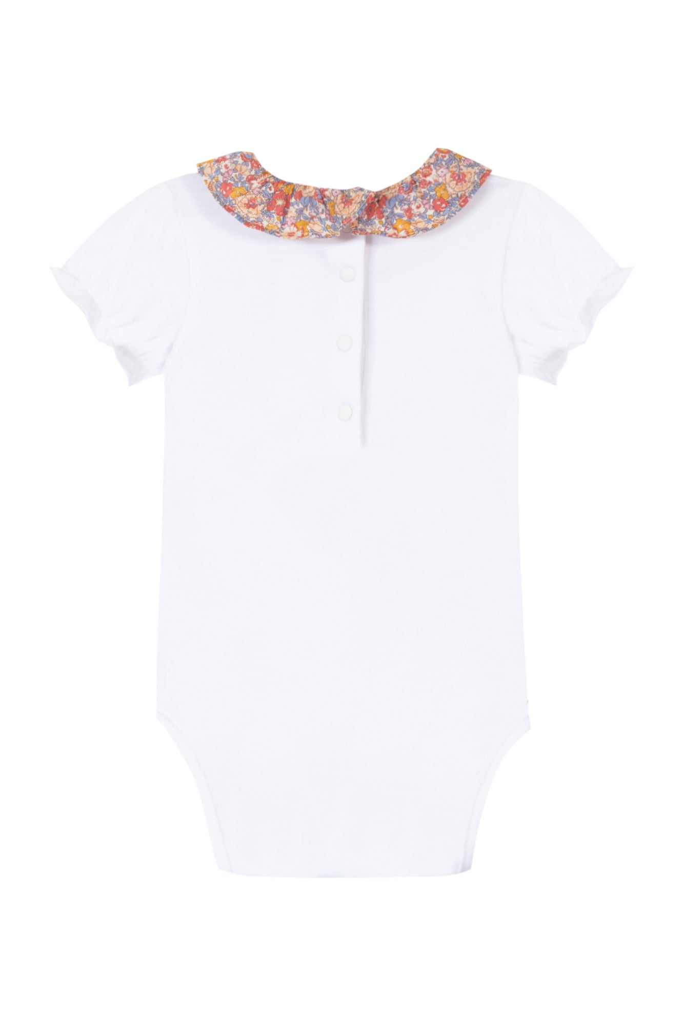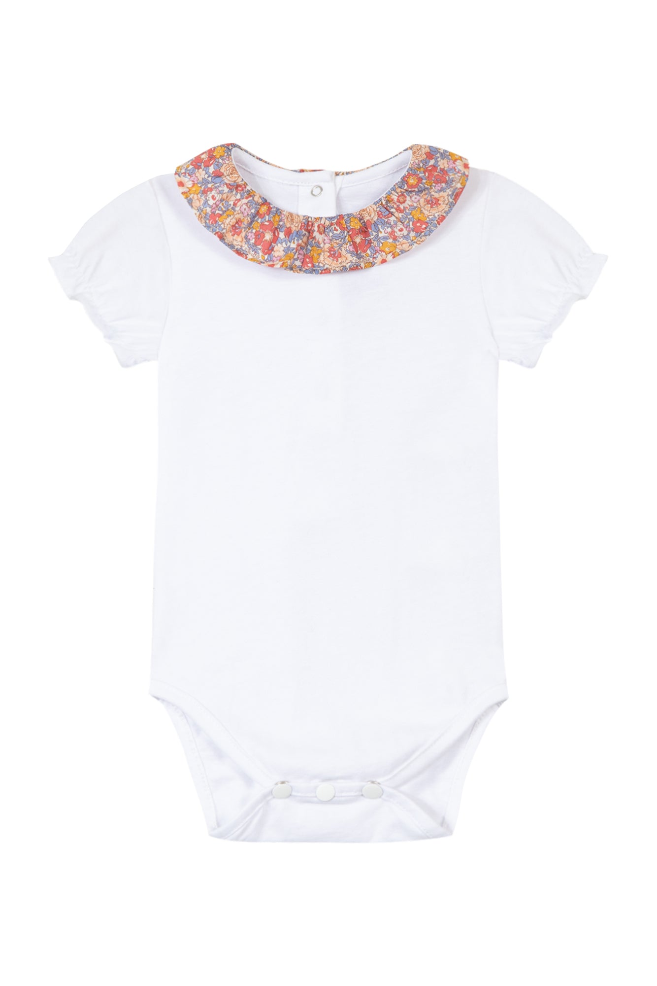 This body made of jersey is soft and gentle on baby's skin. We love its pretty ruffled collar and it's easy to put on thanks to its snap openings on the back and crotch.