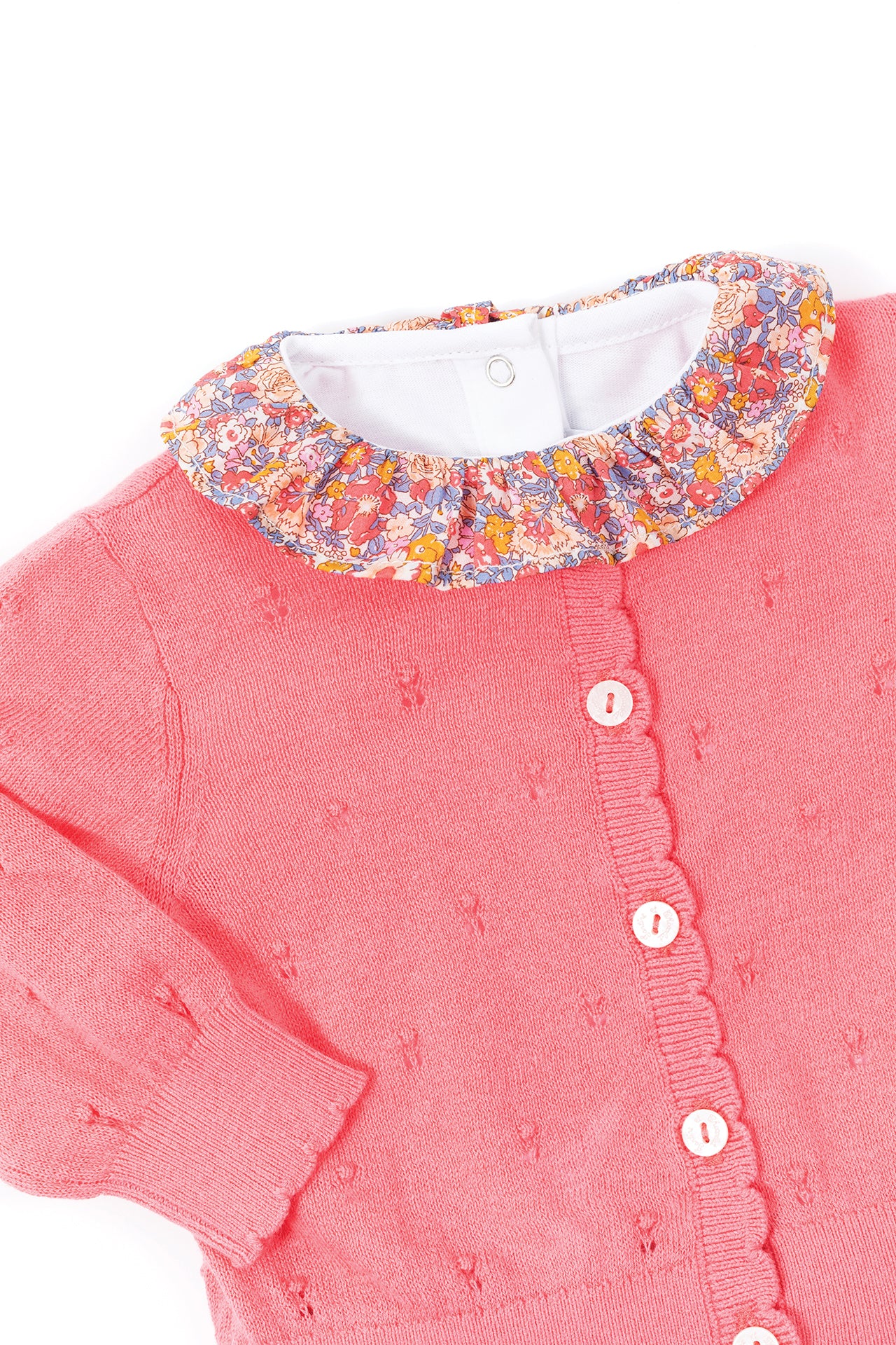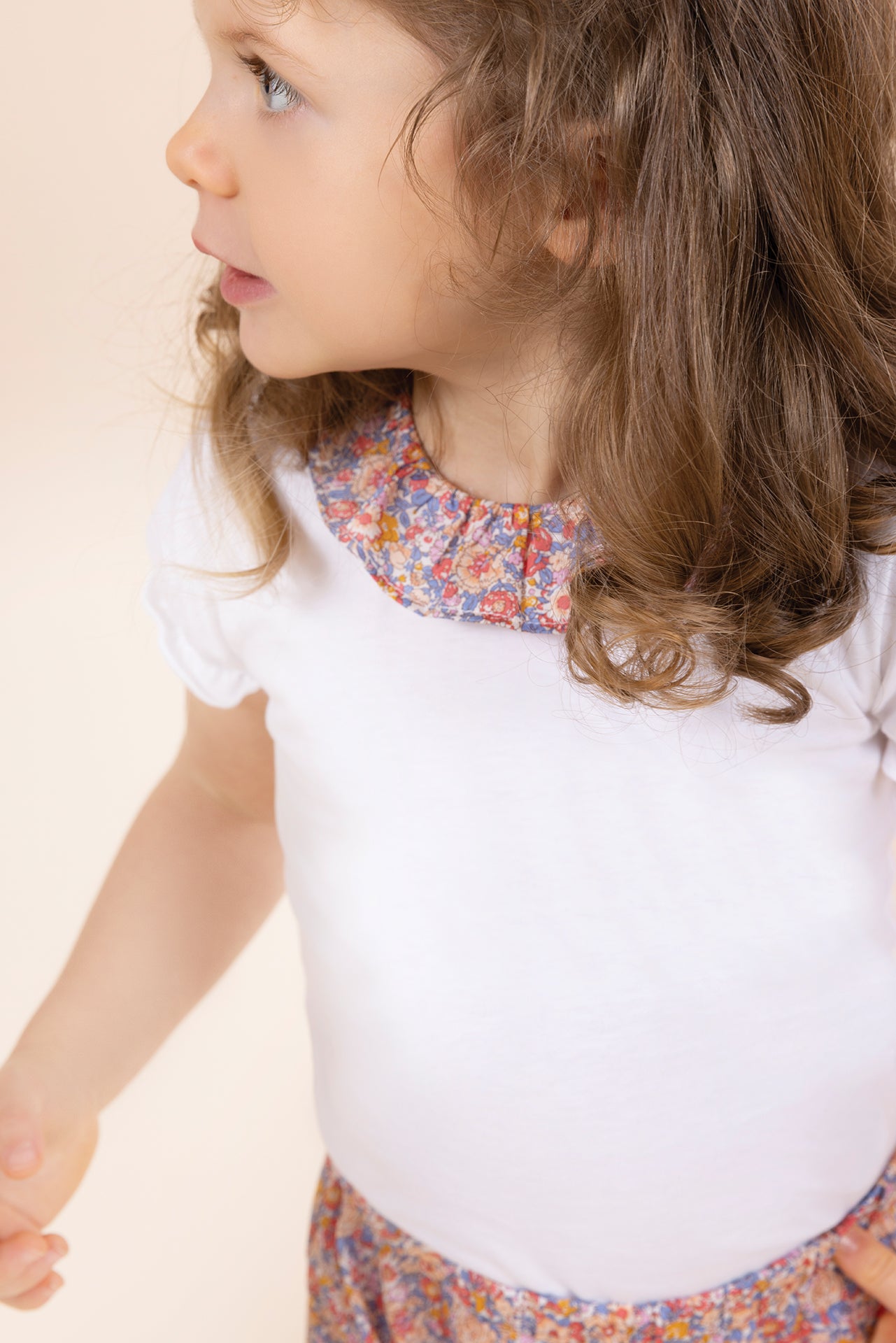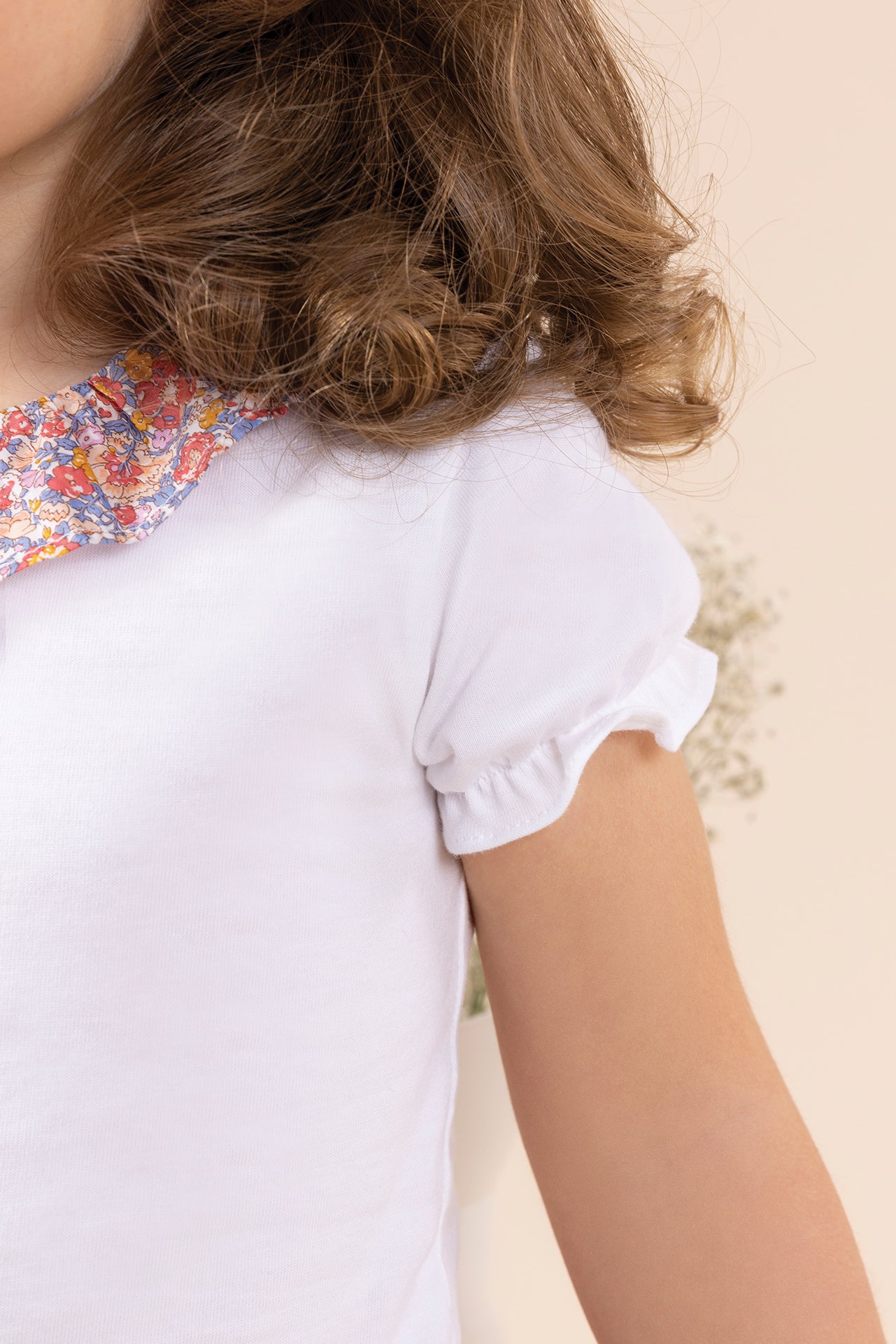 This body made of jersey is soft and gentle on baby's skin. We love its pretty ruffled collar and it's easy to put on thanks to its snap openings on the back and crotch.