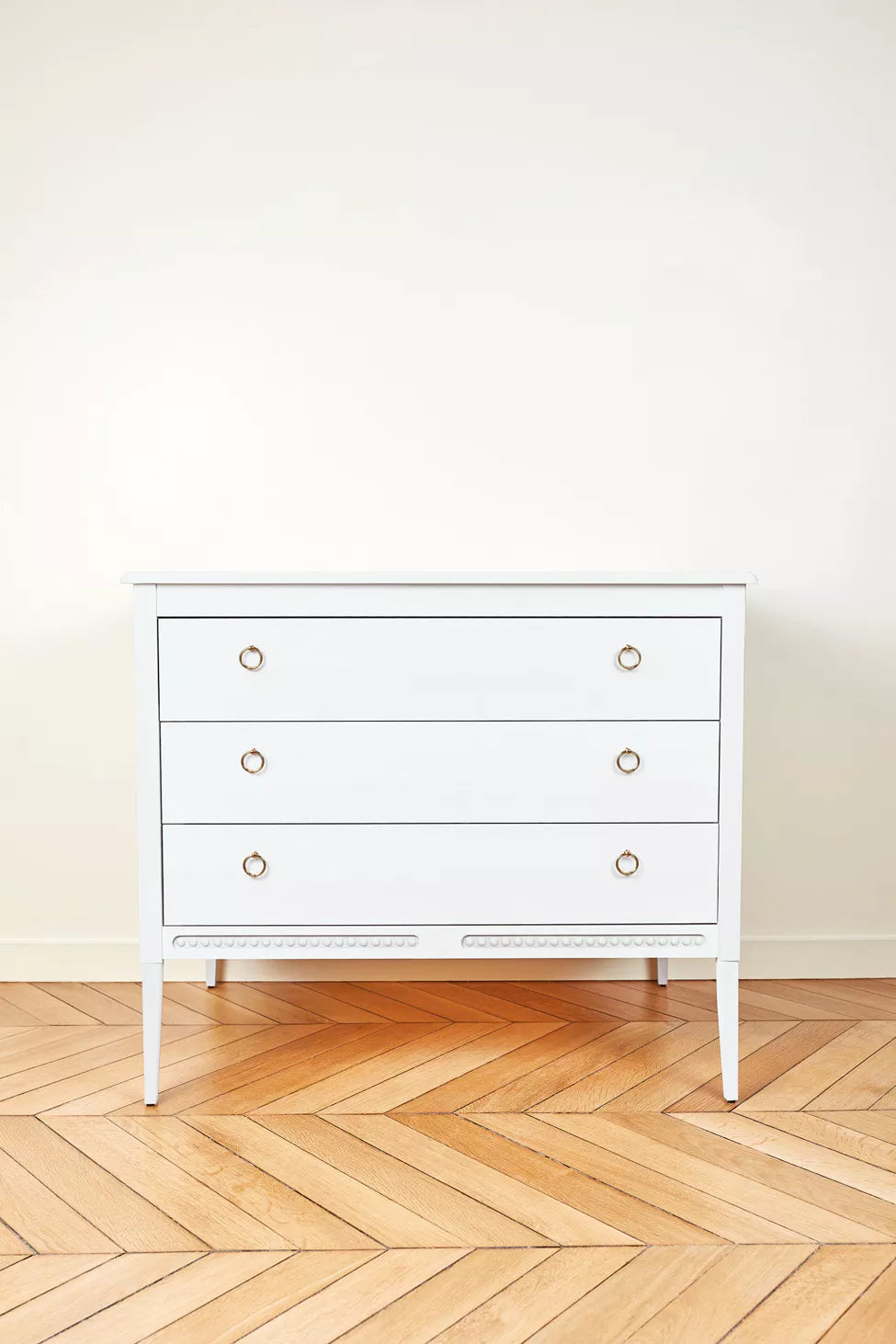 Its brass handles with sculpted details will bring a delicate touch. The chest of drawers is made according to the tradition and know-how of 17th century carpenters in solid birch of first choice, coming from eco-managed forests of Northern Europe.