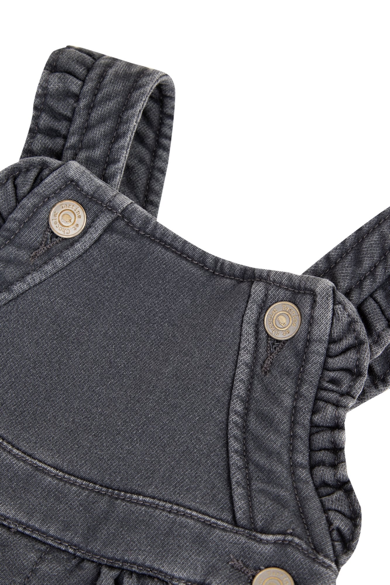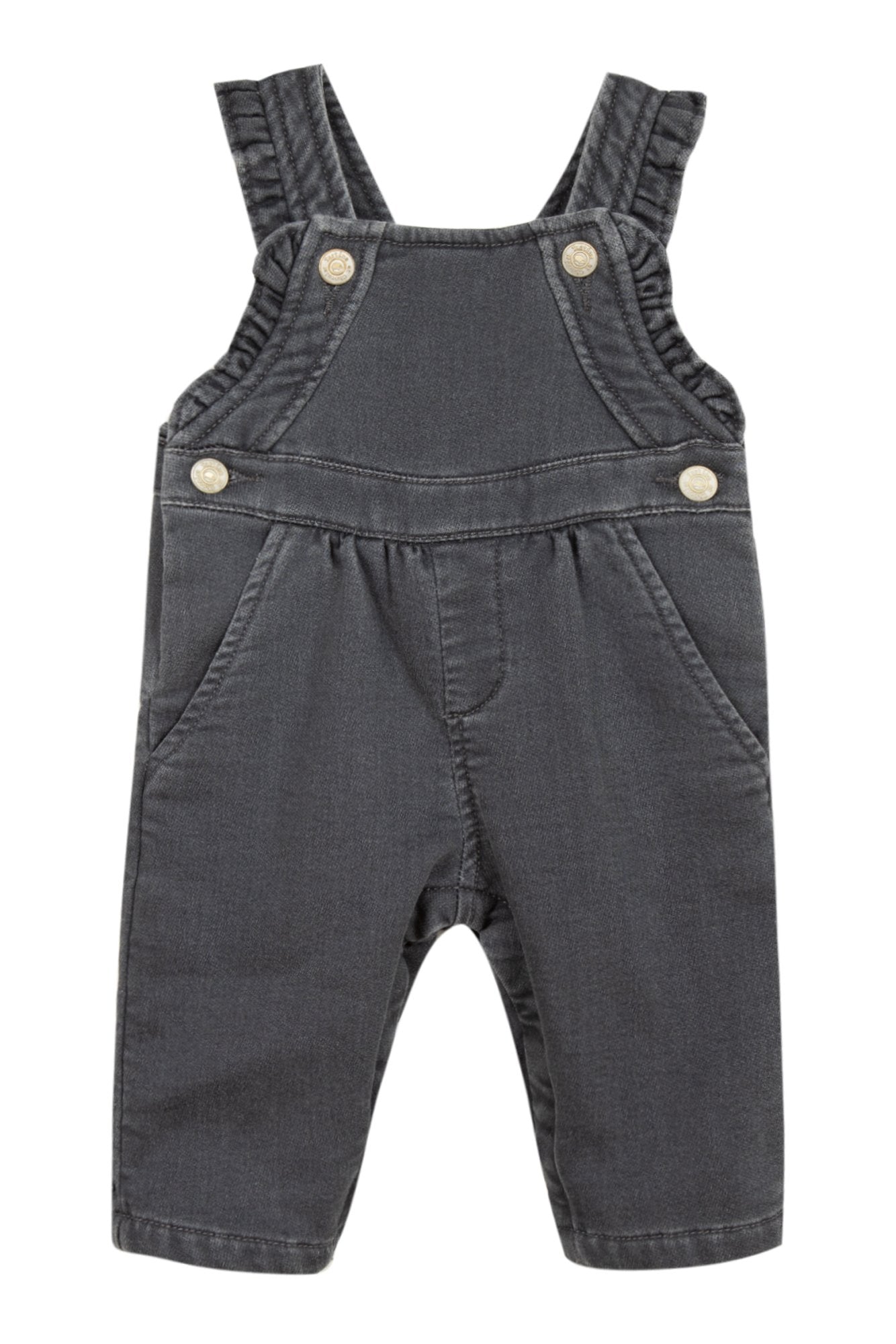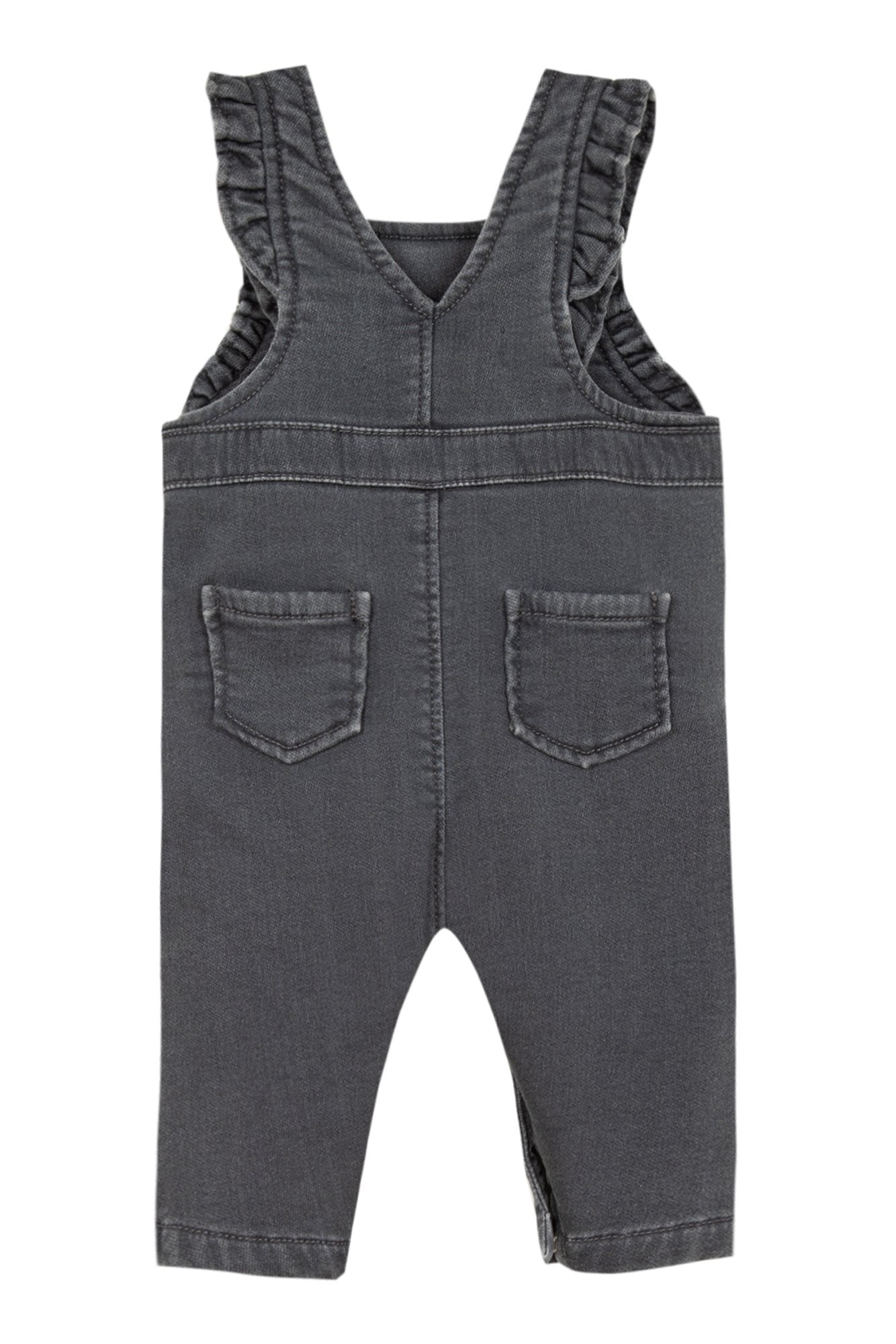 The grey marl denim jersey dungarees are perfect for a stylish, casual look. The warm fabric is ideal for winter and we love the ruffled details. Perfect for pairing with a bodysuit.