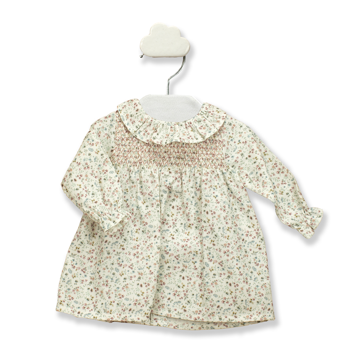 The perfect cotton dress for Autumn! Very sweet little dress with a frill collar and smocking detail - lined for extra comfort for your little one.