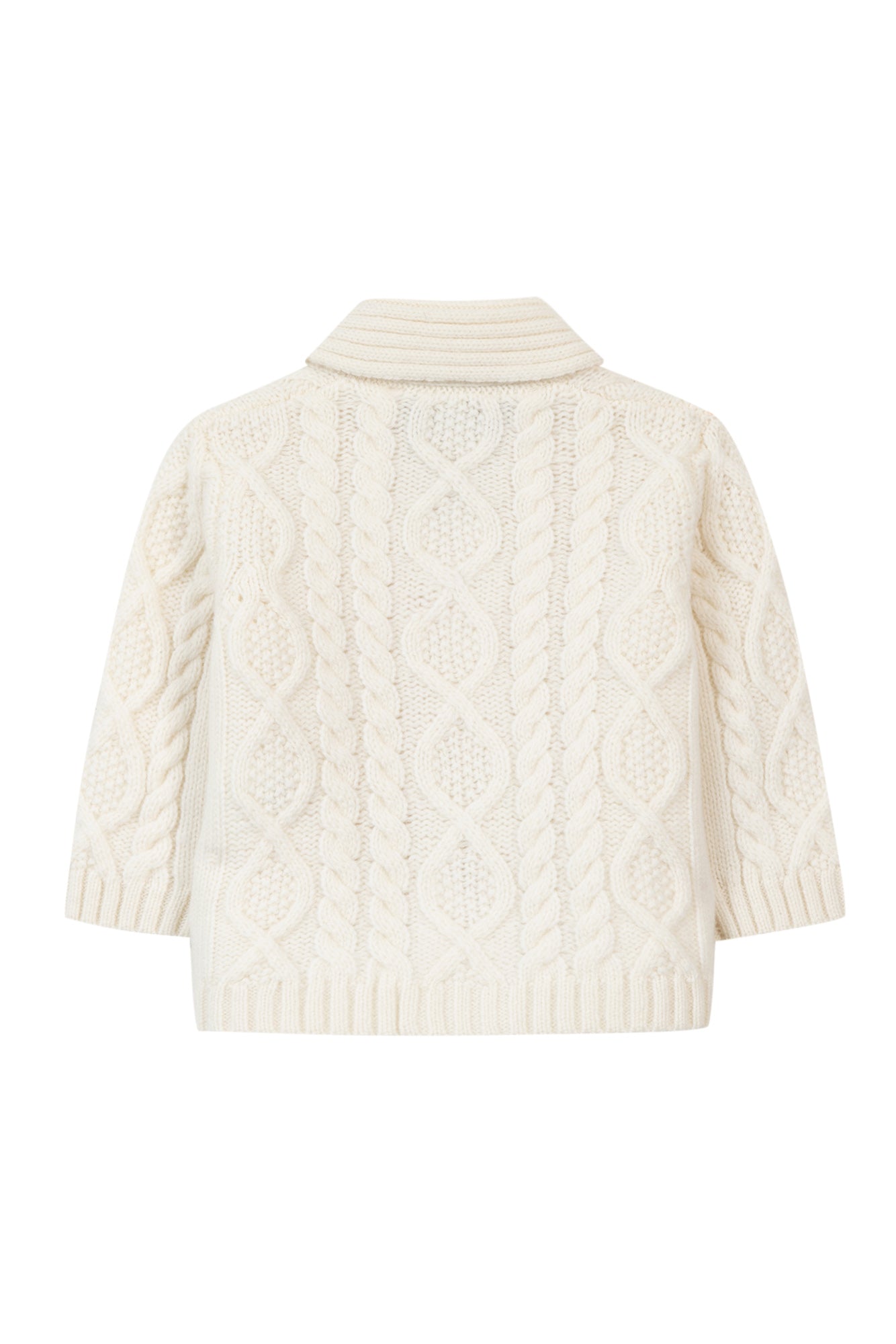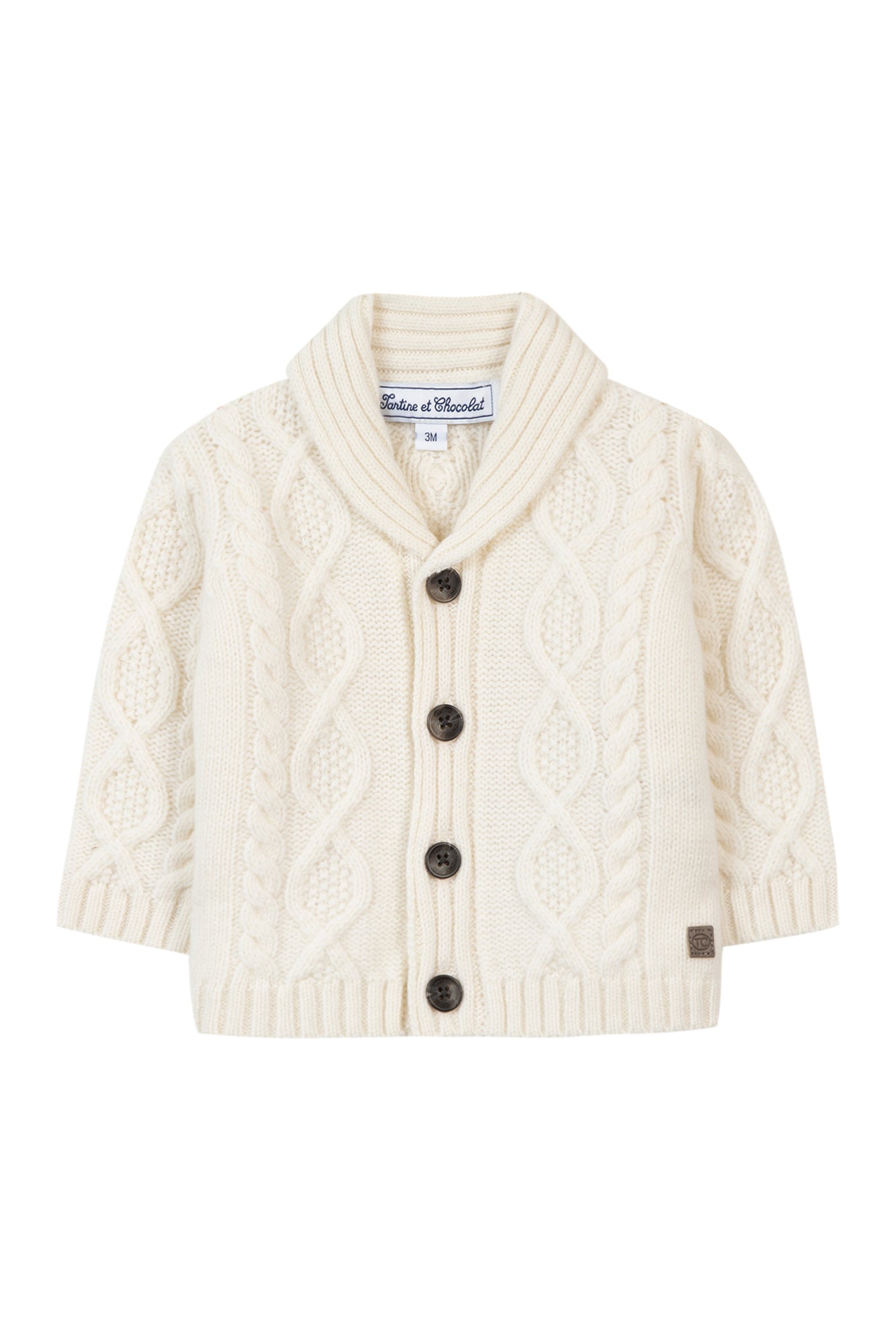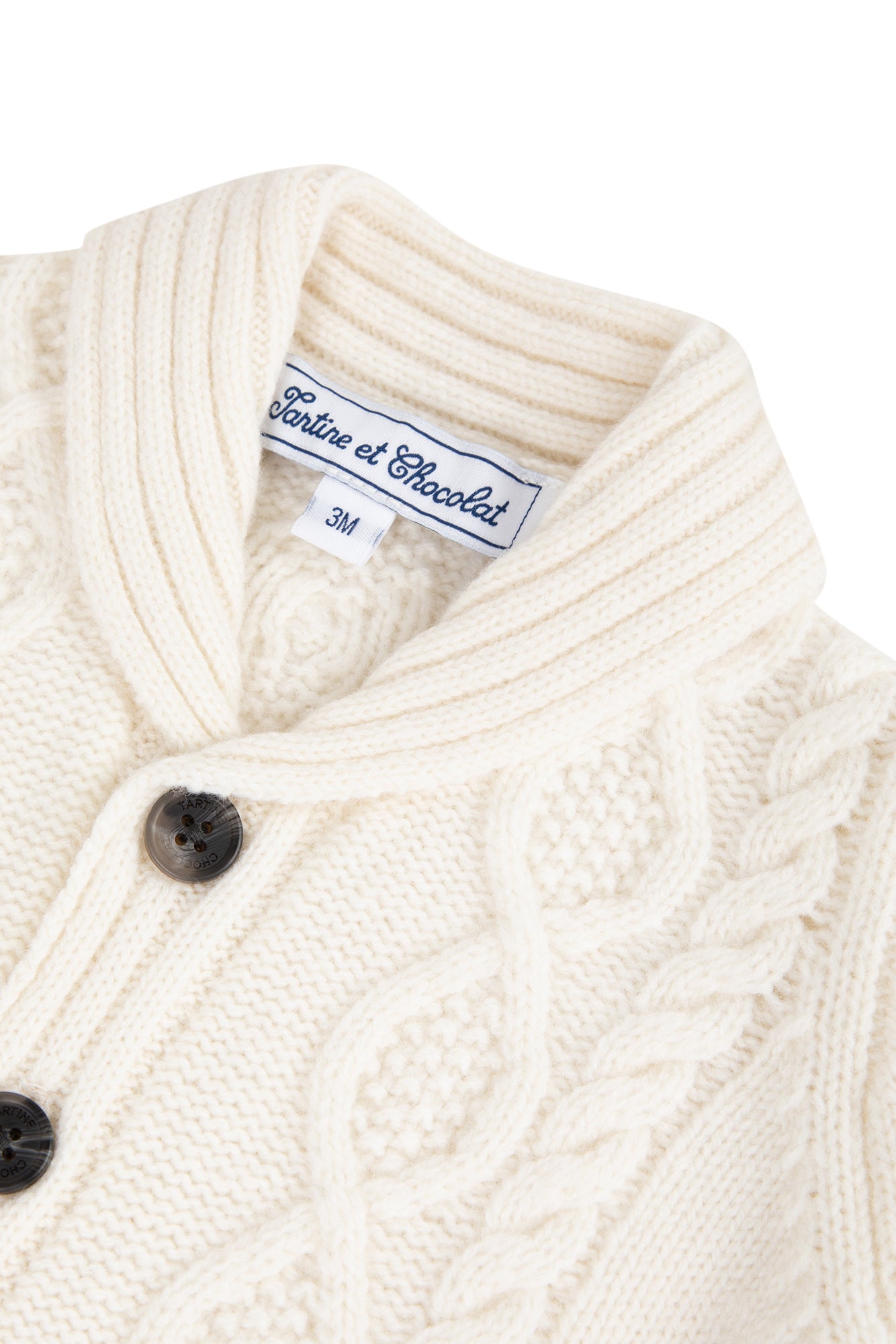 With its cable-knit fabric, this mother-of-pearl cardigan in merino wool is a stylish piece for any occasion. We love the shawl collar which creates a retro look for little boys. The jacket can be put on over your little one’s head or taken off with the buttons on the front. Ideal for everyday wear, from days out in the mountains to your little one’s first play dates with friends, we love pairing it with gorgeous trousers or dungarees.