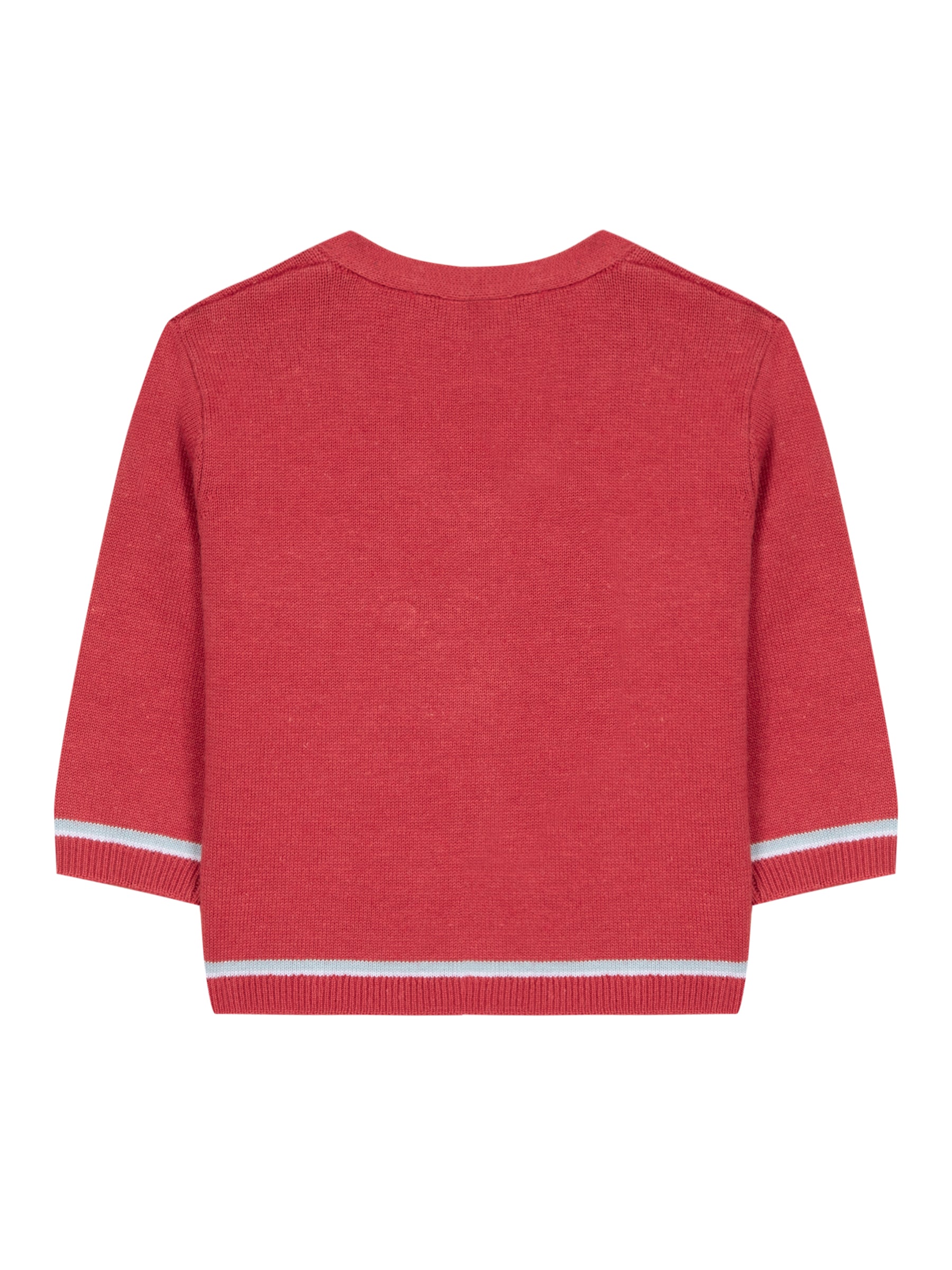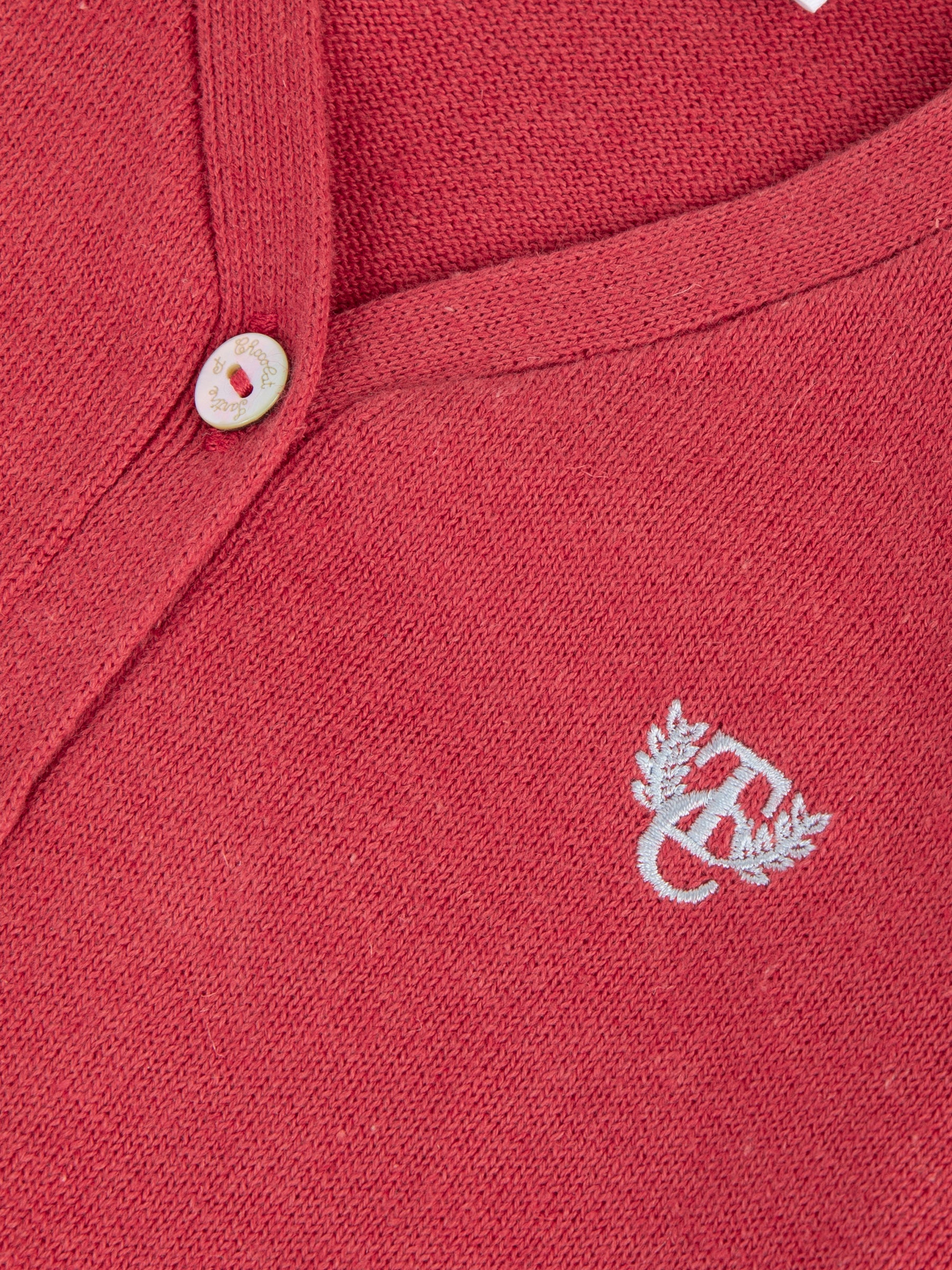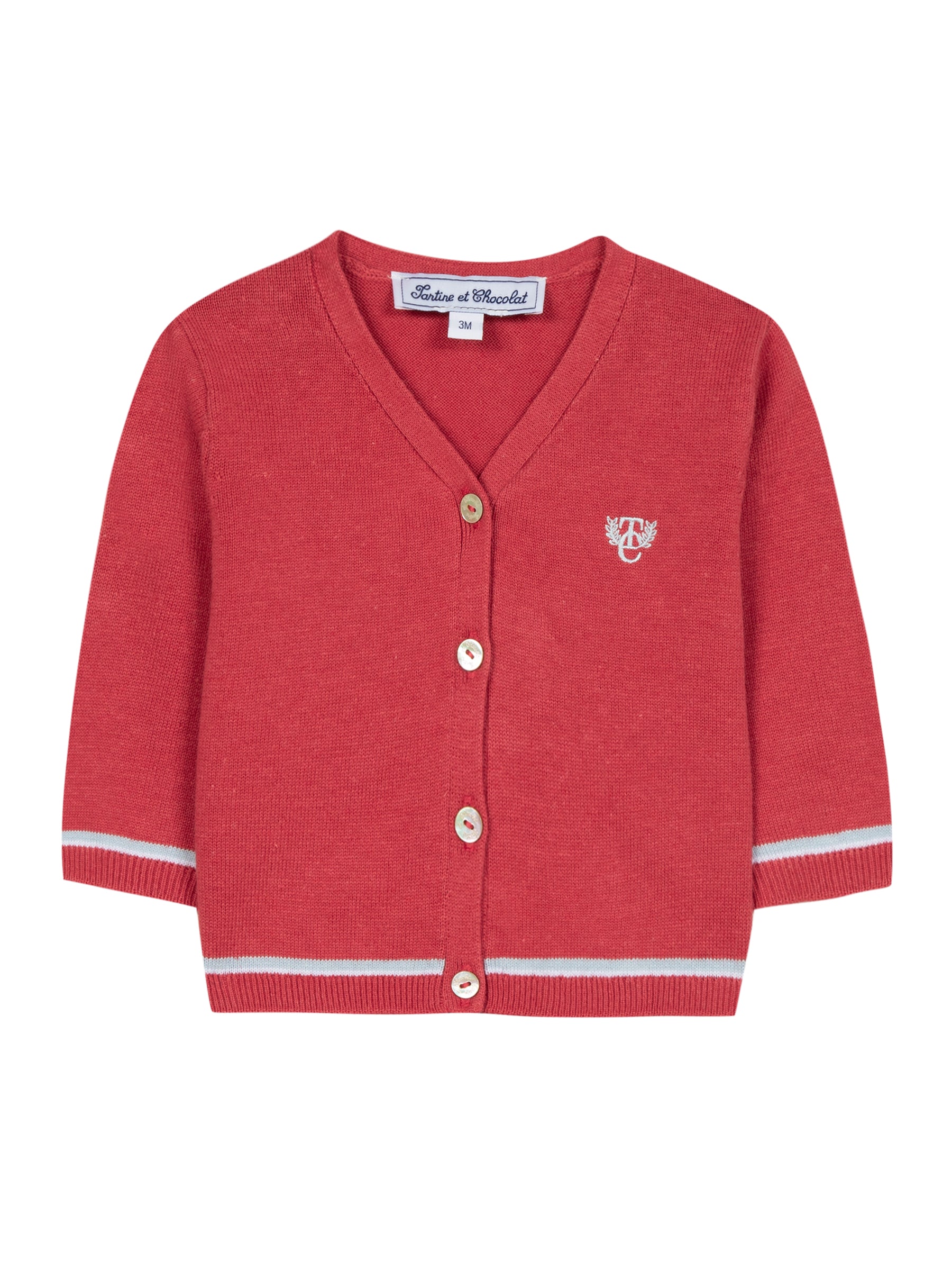 It’s time for summer by the sea with this gorgeous V-neck cardigan! Made from cotton and linen, it’s easy to wear: your little boy will be comfortable and protected in this, whatever he gets up to. The V-neck and three-colour stripes on the sleeves and at the bottom of the cardigan add a modern, elegant touch, while the TC crest on the front gives the cardigan an authentic feel.