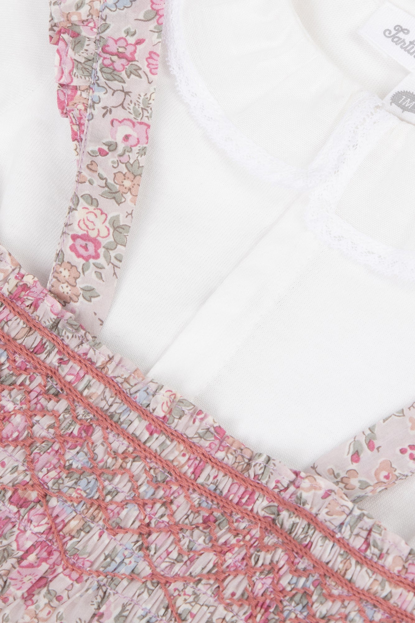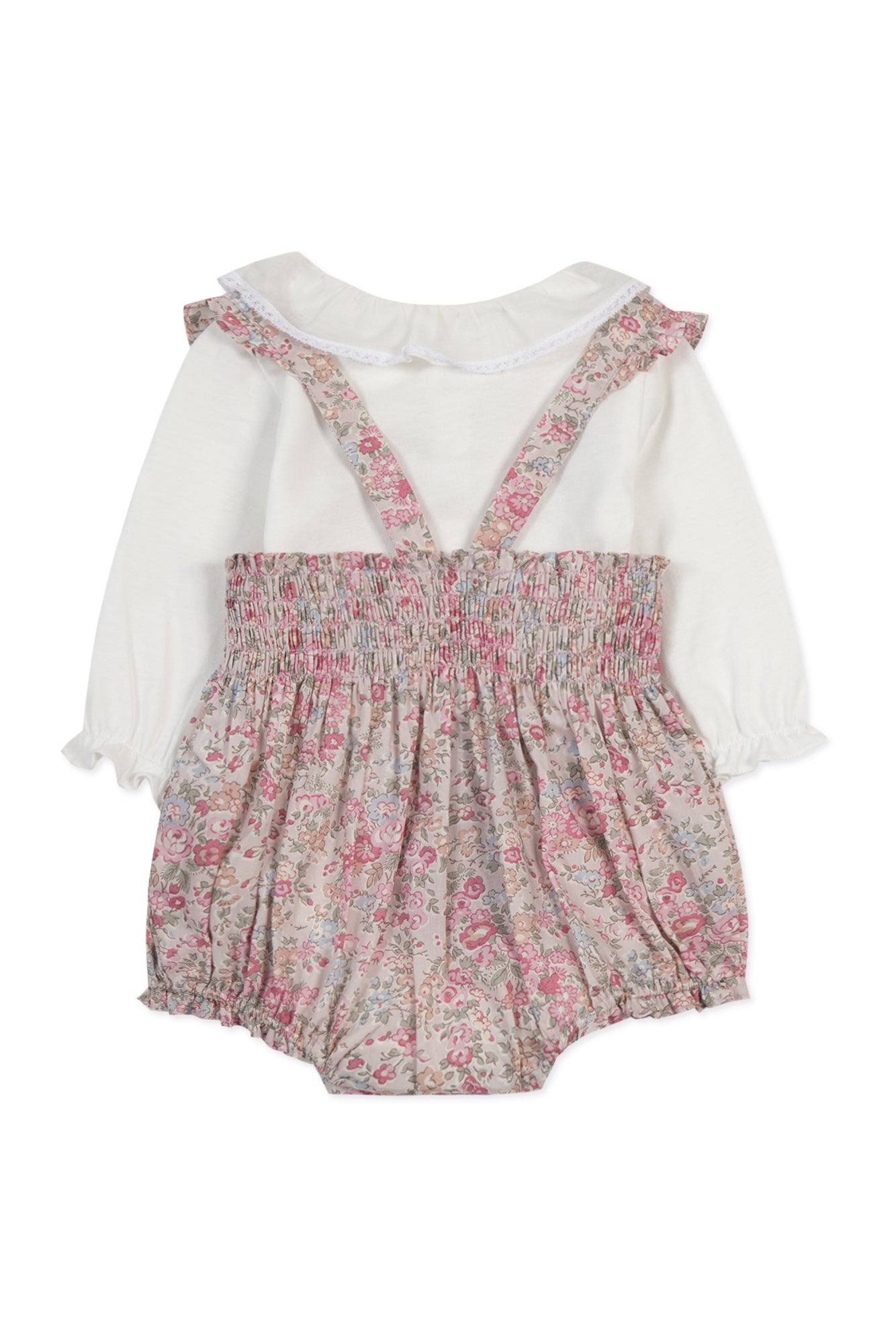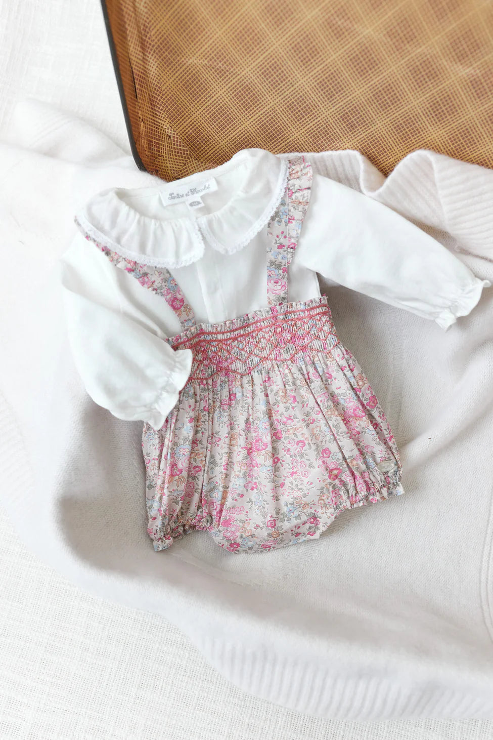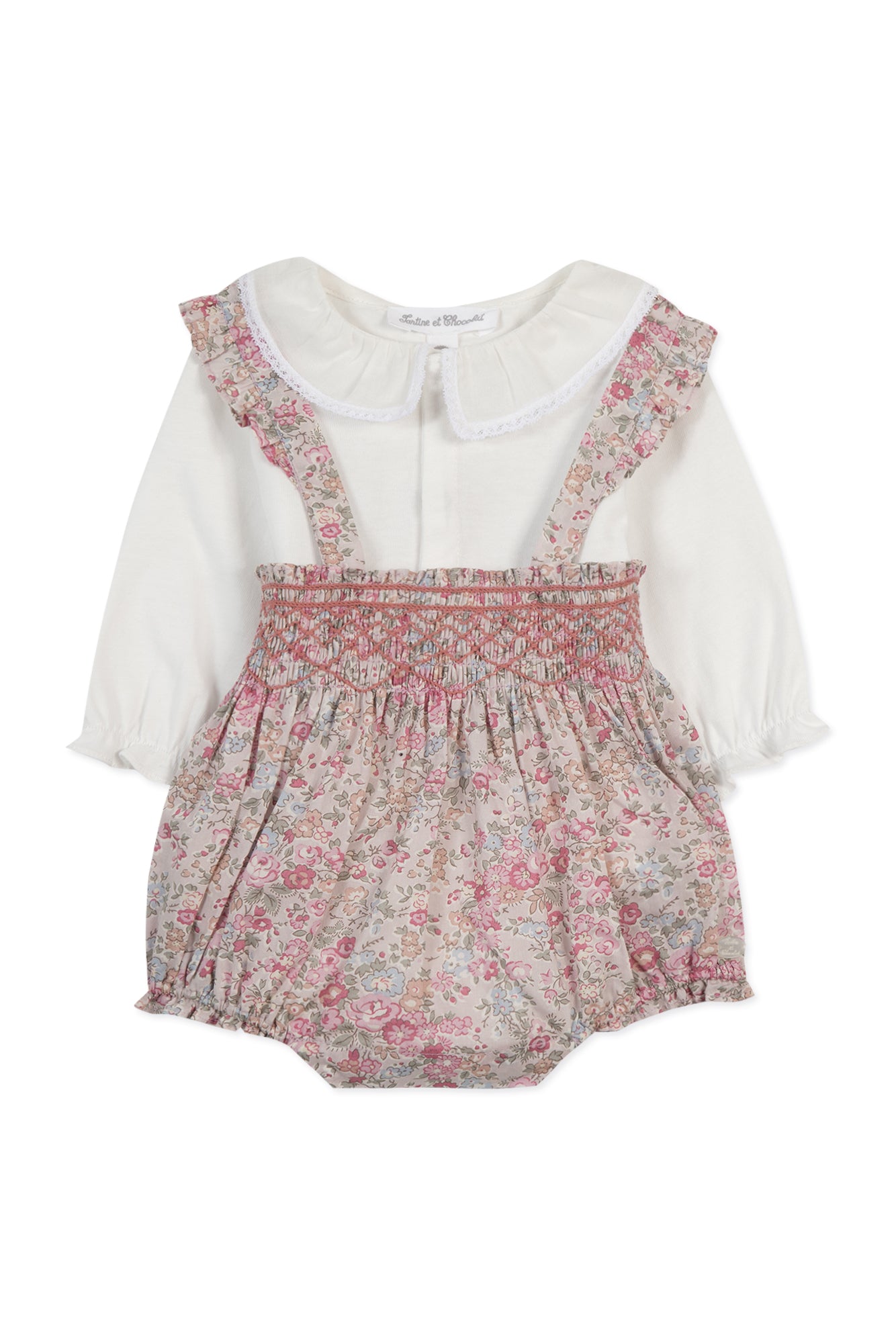 We love these two-piece outfits for baby girls. This romper and bodysuit is made from exquisite Liberty print fabric and the bodysuit is the softest cotton. Pair with tights and a cardigan to complete this adorable outfit.