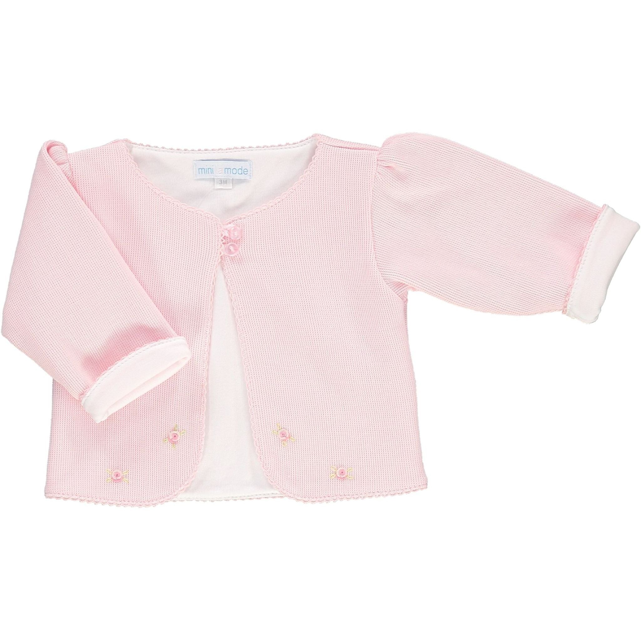 Pretty rosebuds have been hand embroidered on the front of this soft Pima cotton knitted cardigan. These cardigans are perfect layered over babygrows.