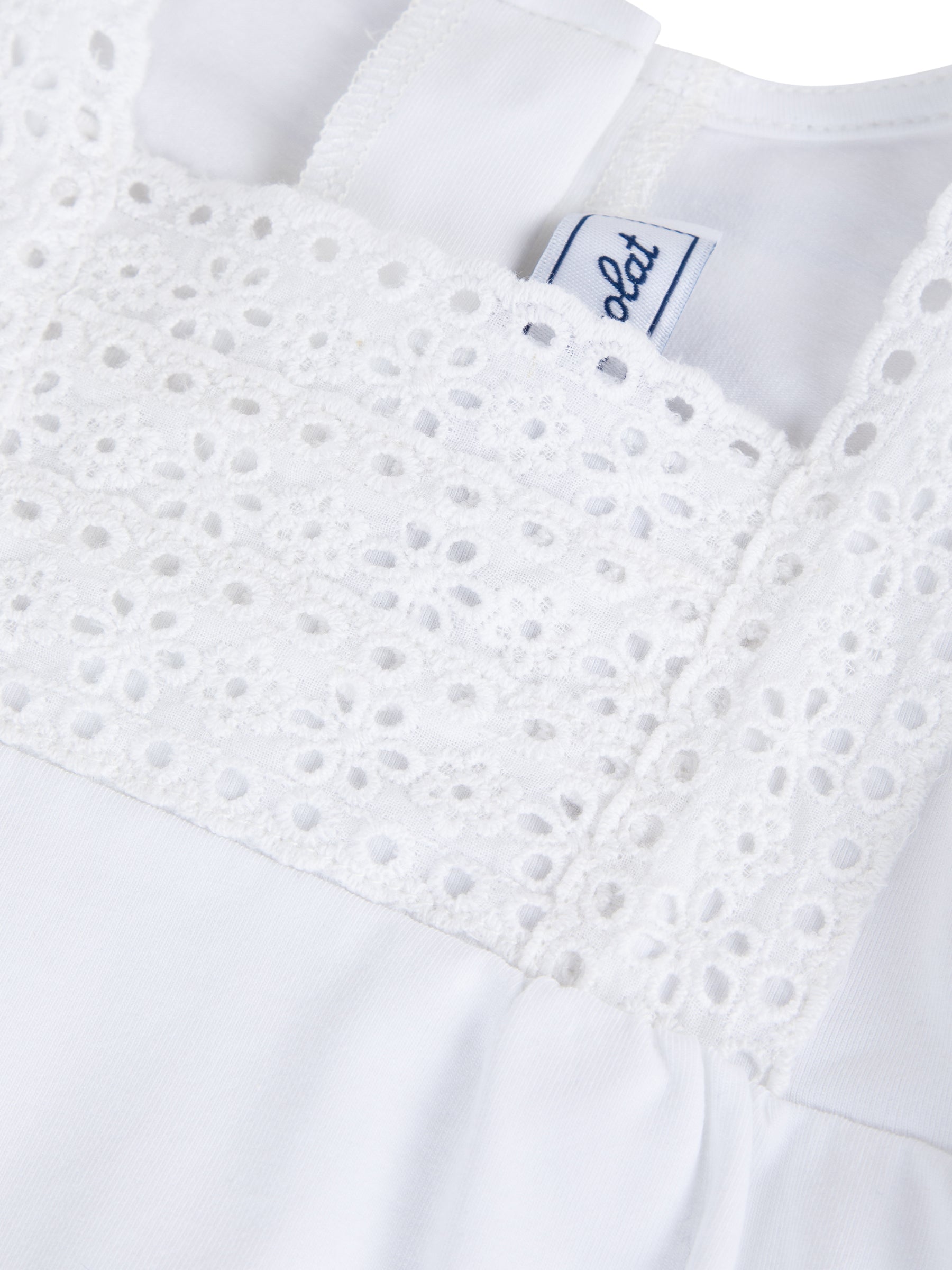 Featuring delicate embroidery on the front for an elegant look, the soft fabrics and natural colour of this T-shirt are incredibly sweet. Ideal for any occasion, it can be worn with shorts or trousers on long summer evenings.