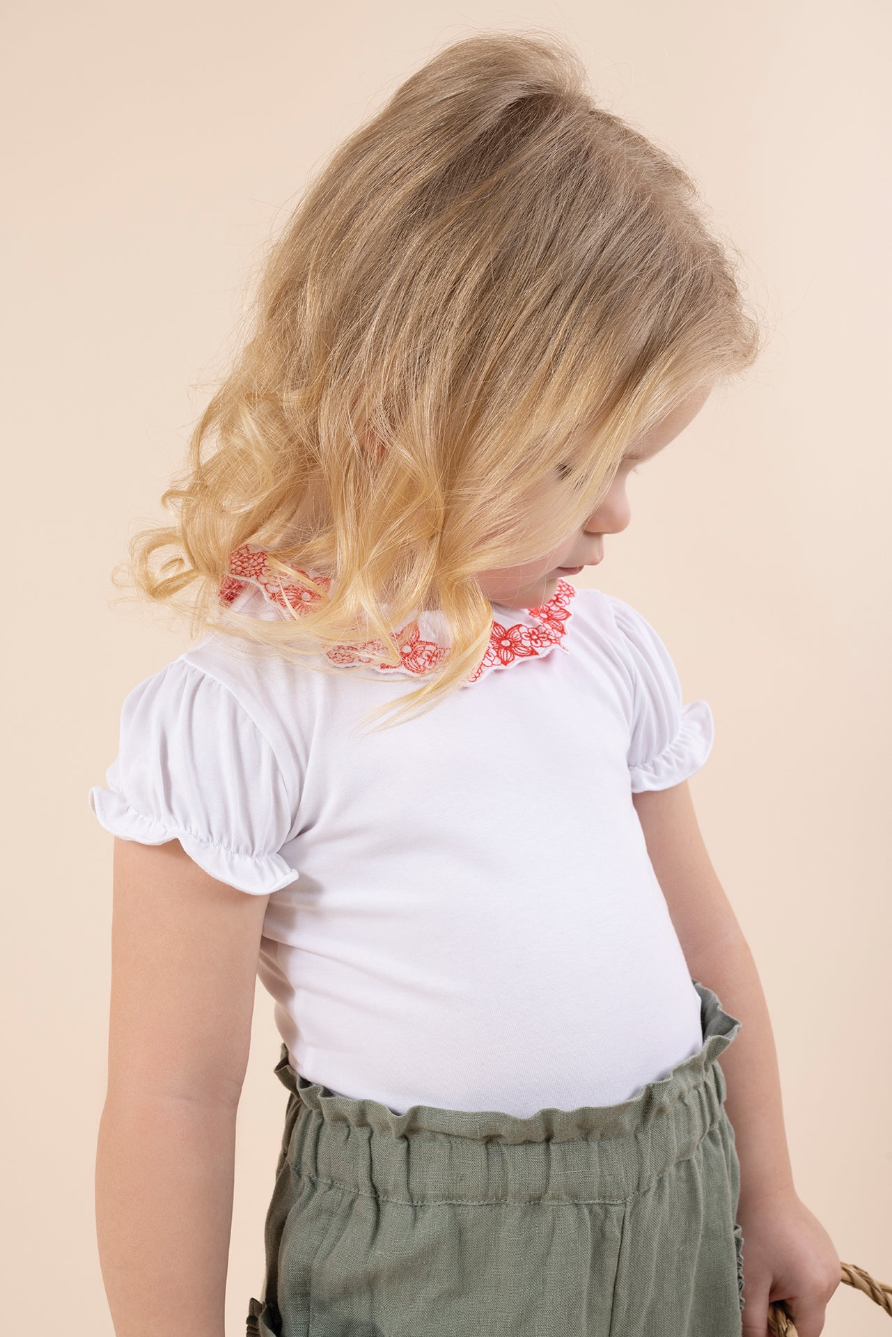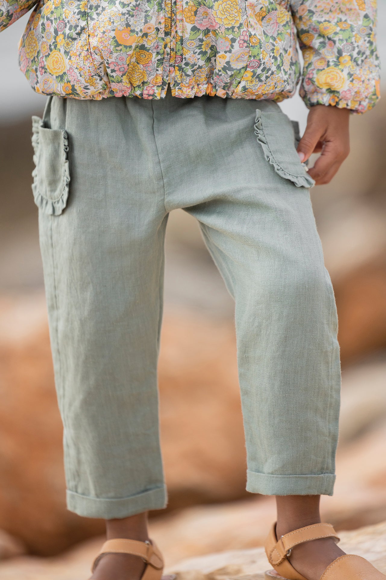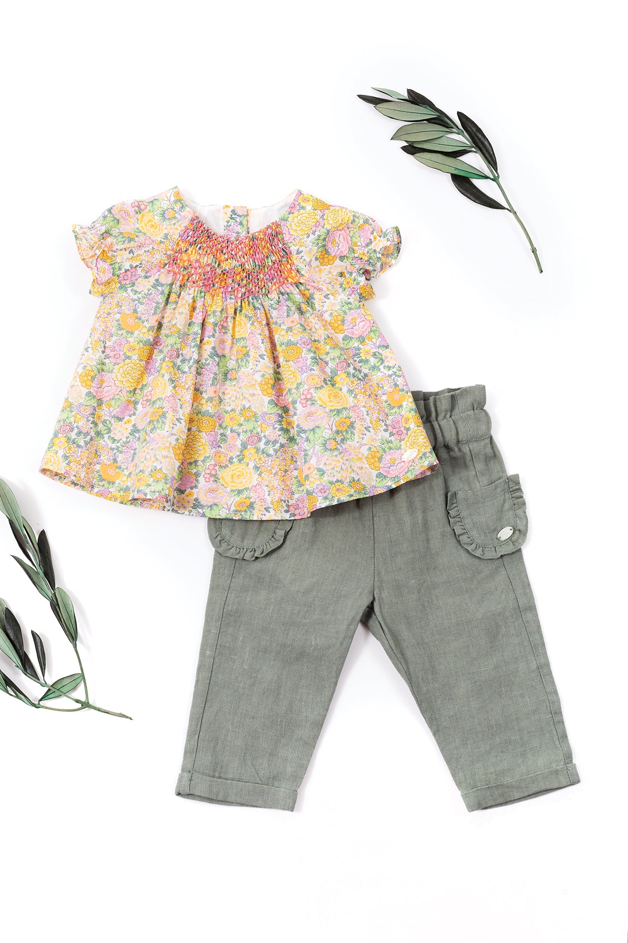 These trousers with ruffled details and its 100% linen material that will bring lightness and spring softness to little girls' outfits.